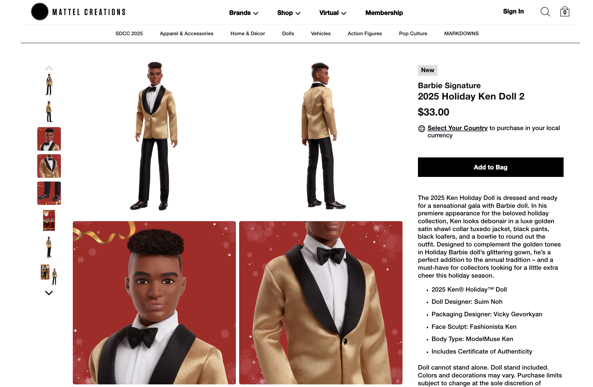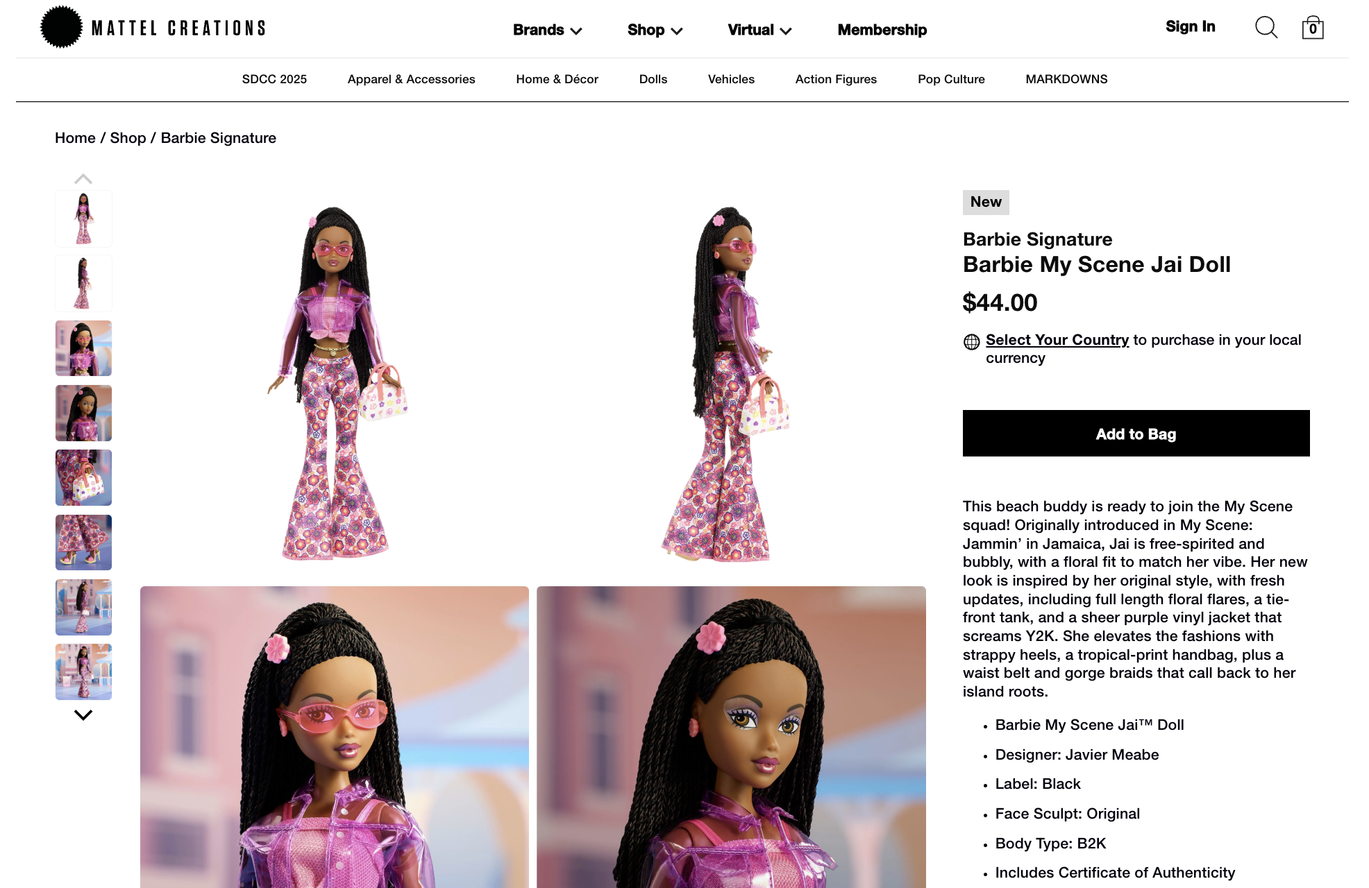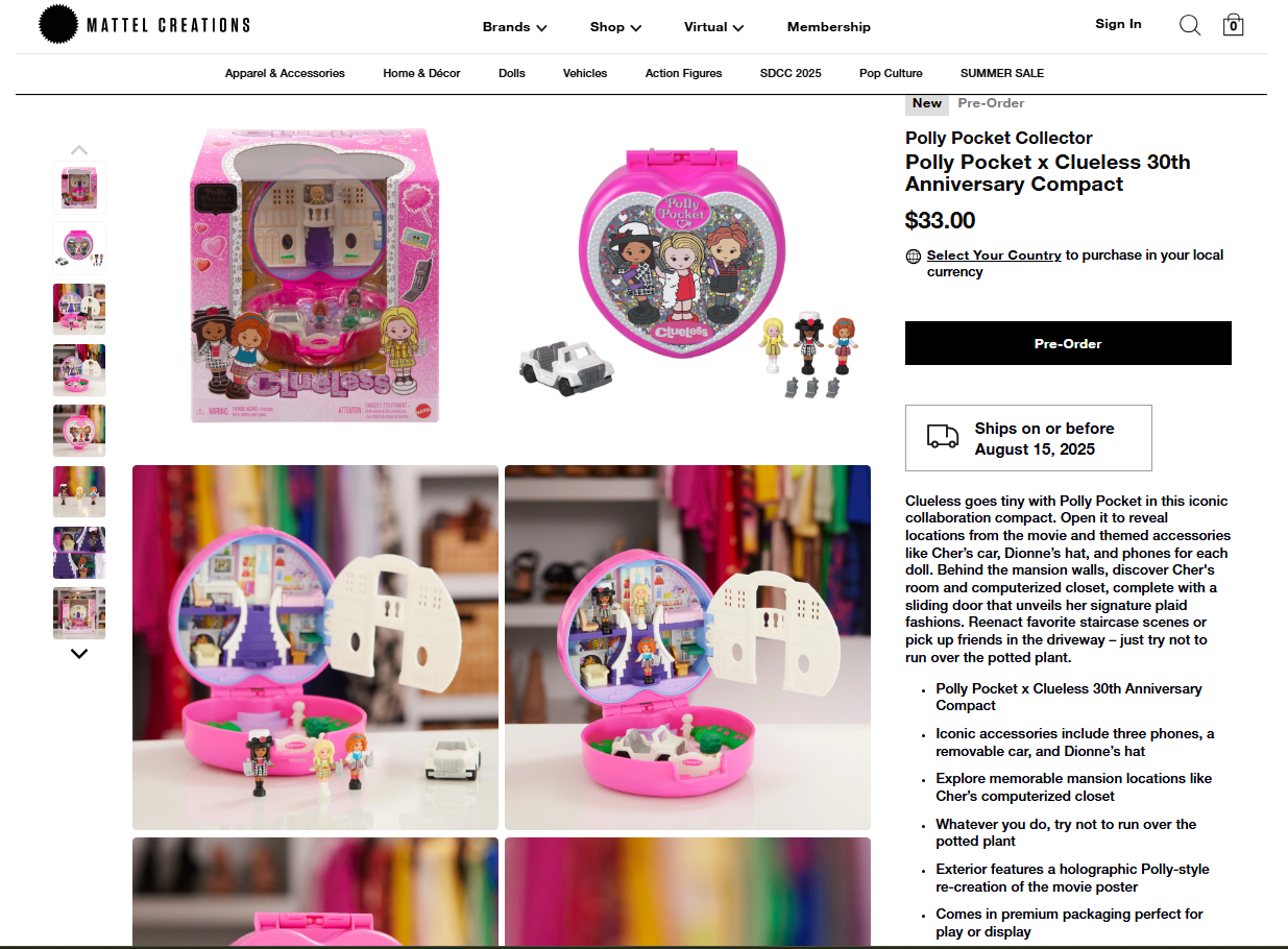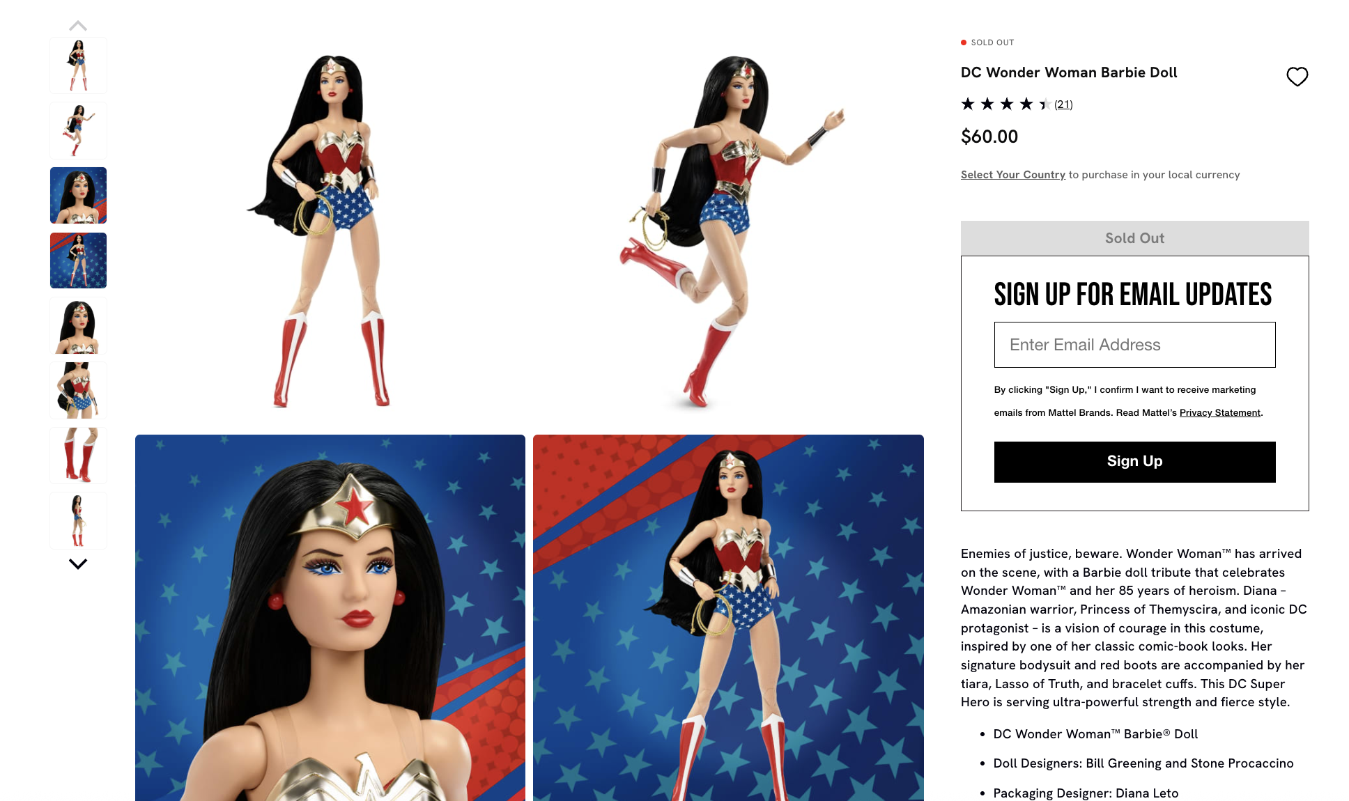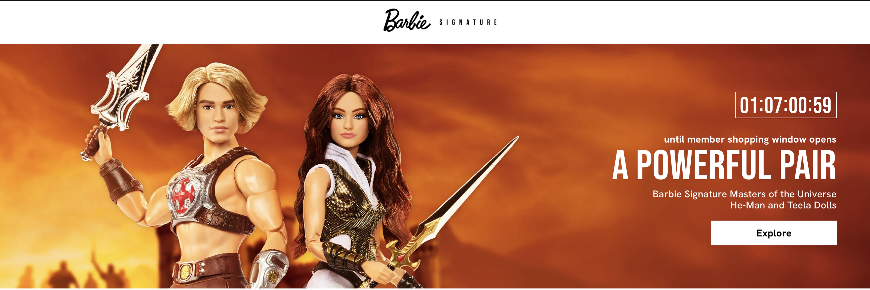 Examples of product pages done for various Mattel brands, intended for an adult collector audience.
