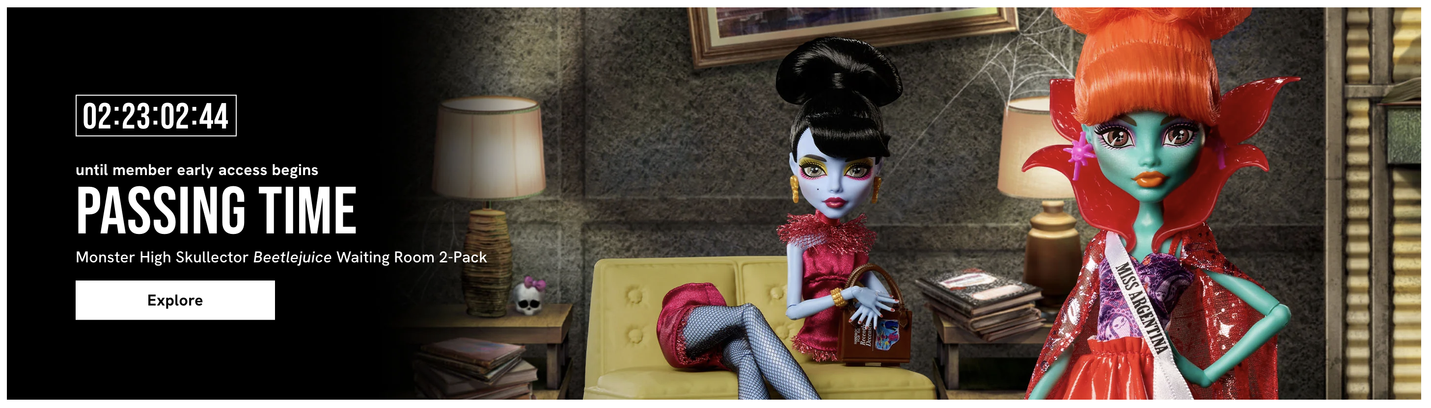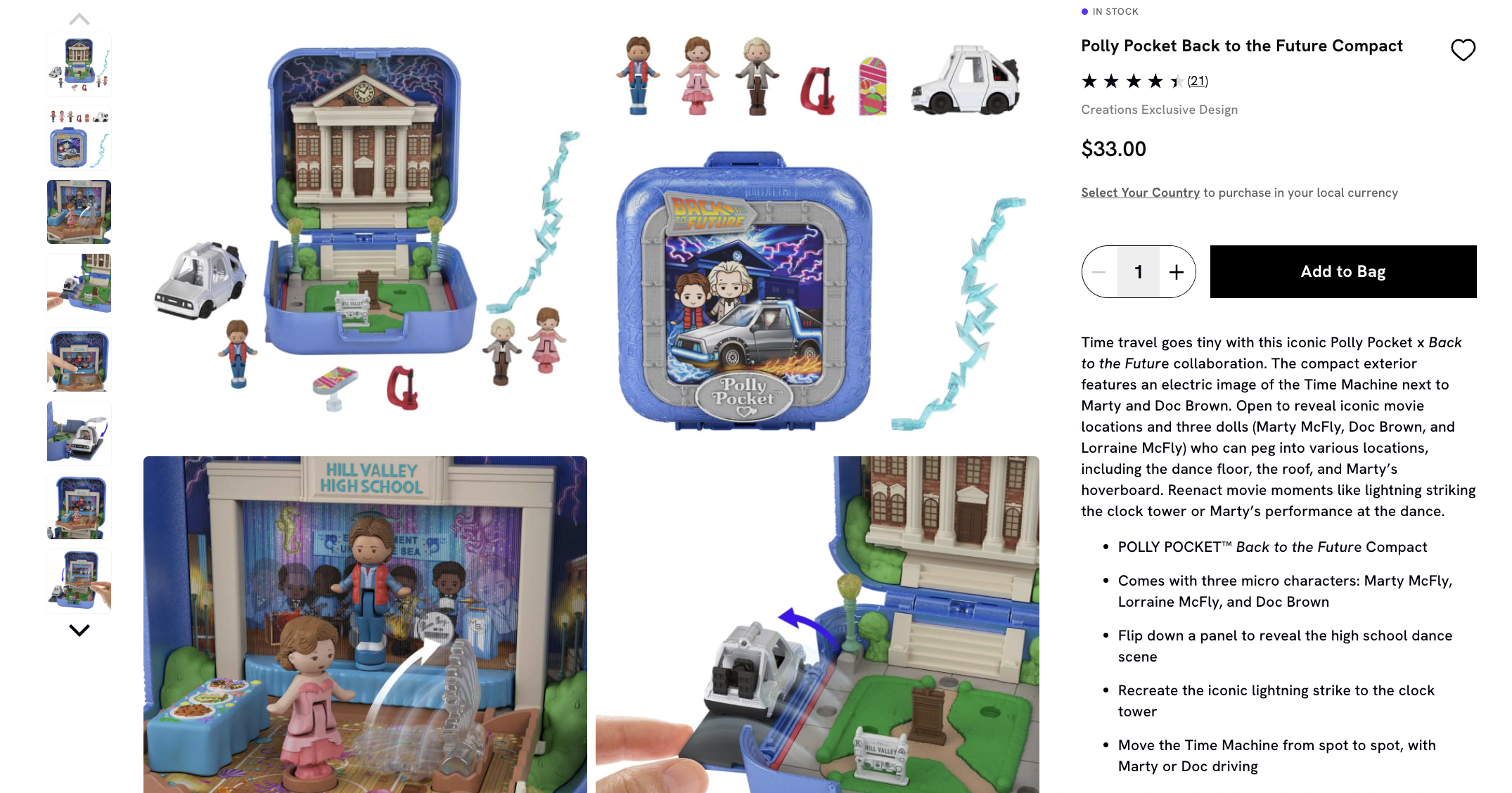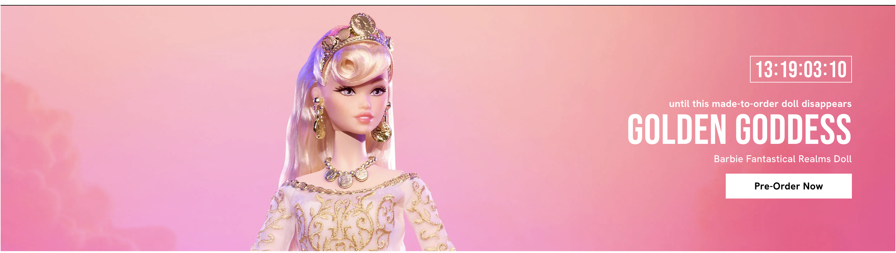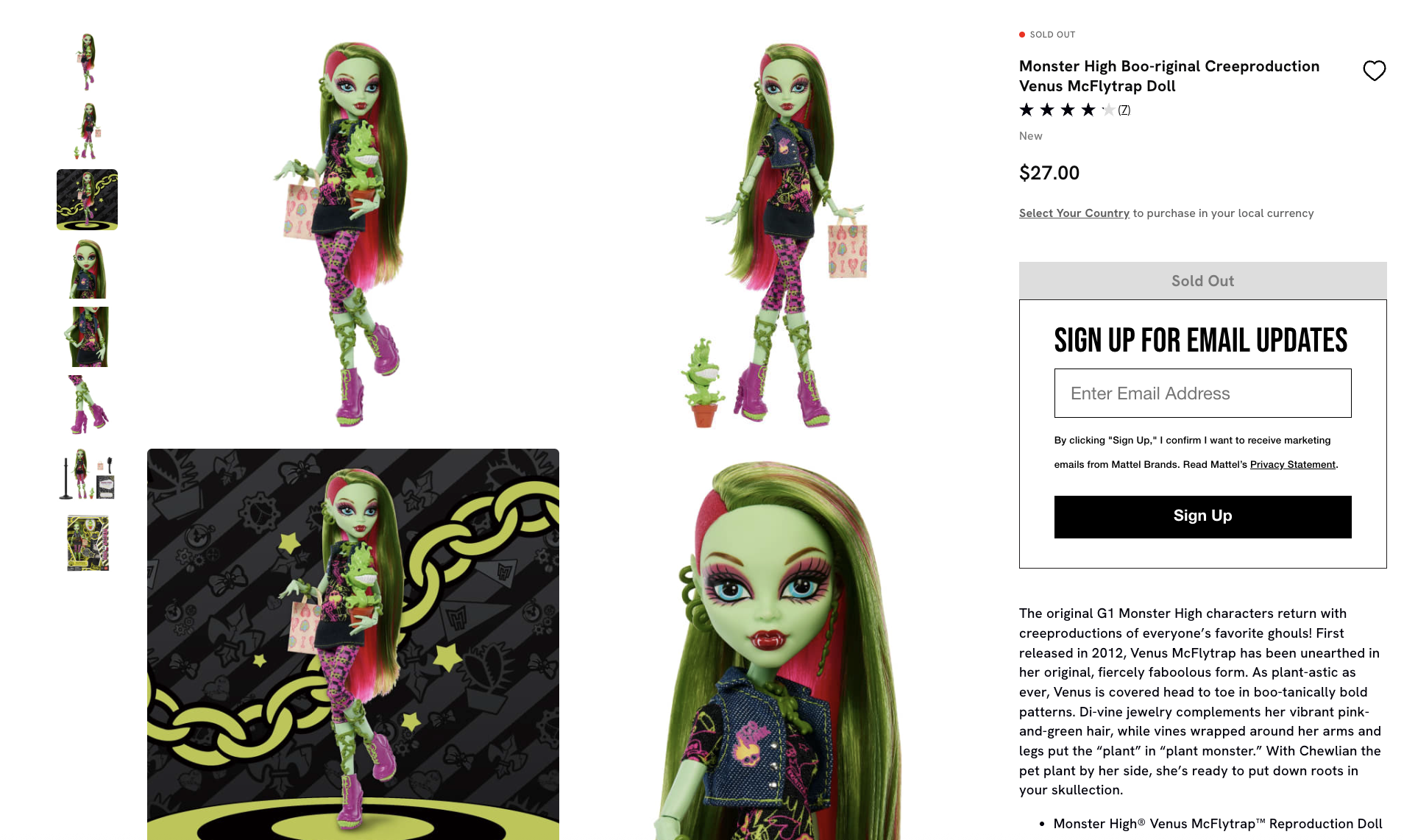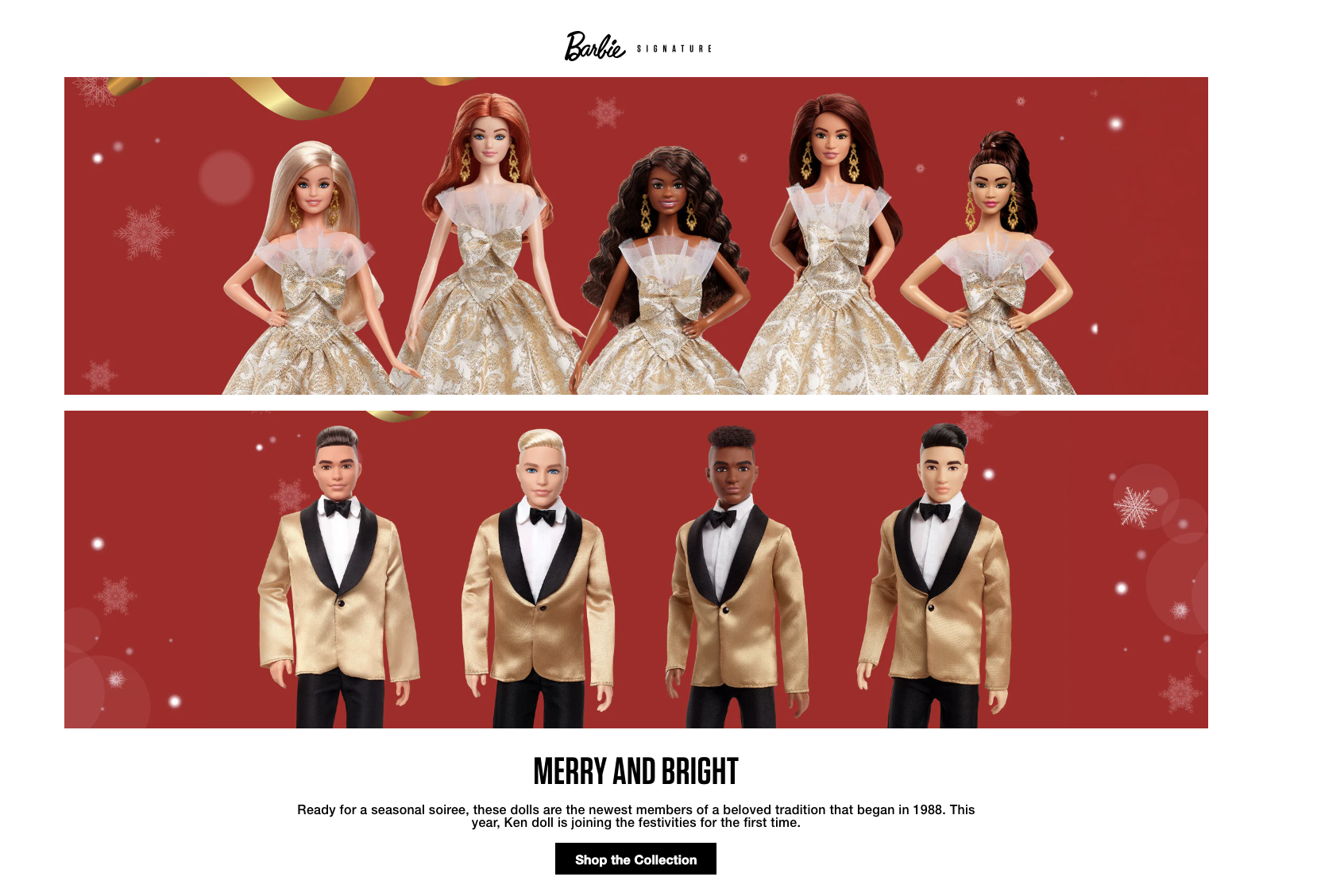 Examples of product pages done for various Mattel brands, intended for an adult collector audience.