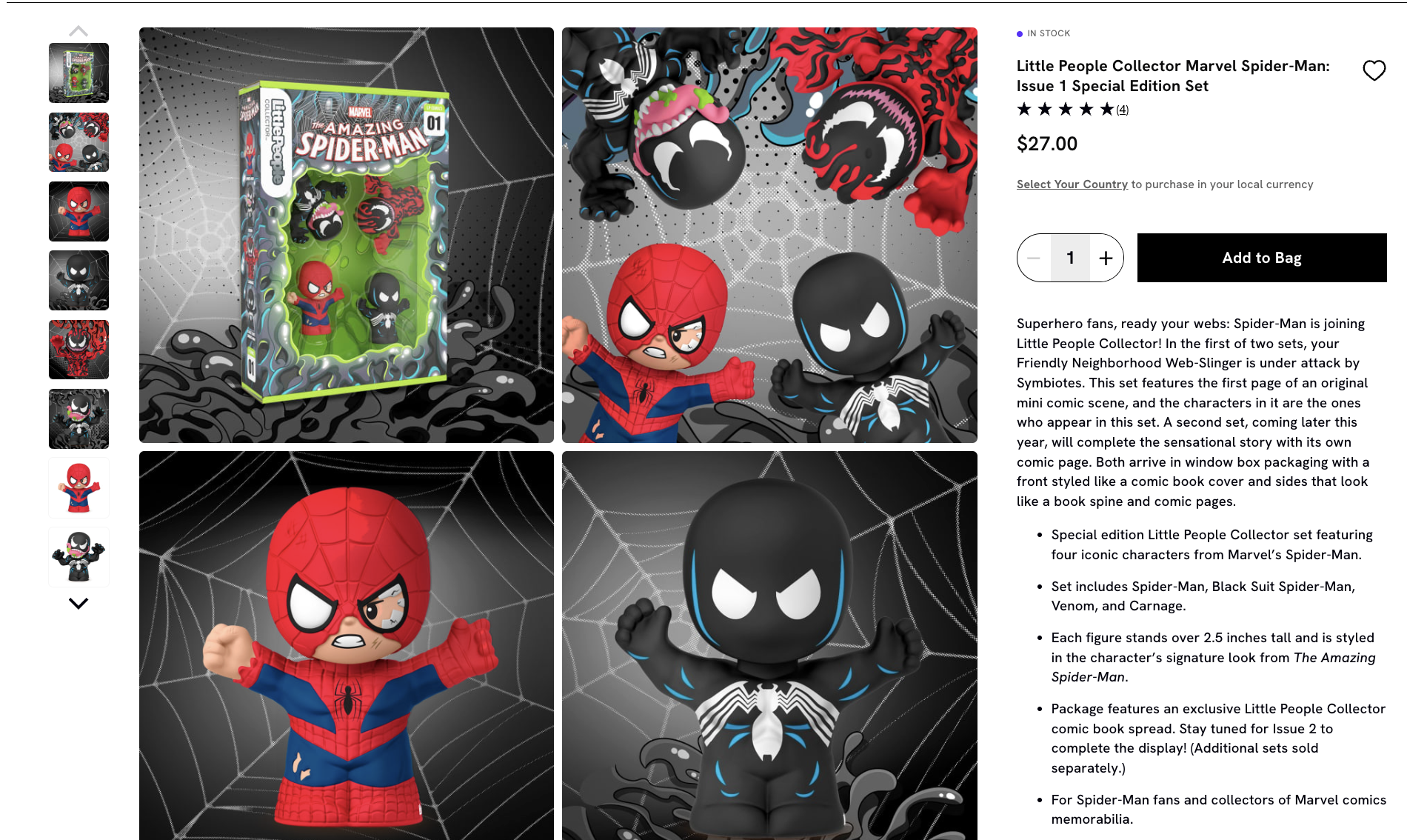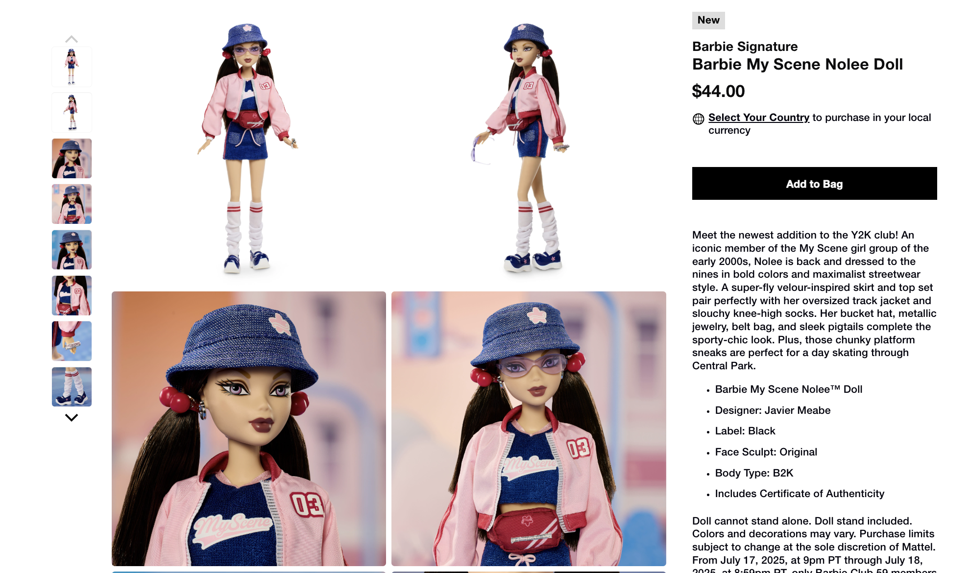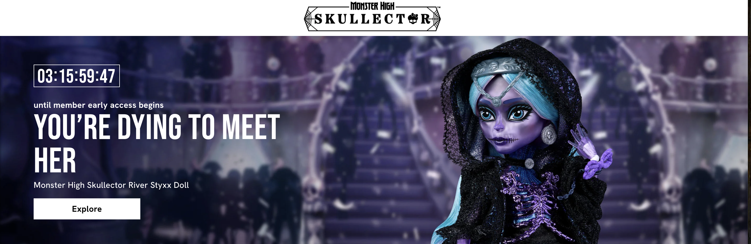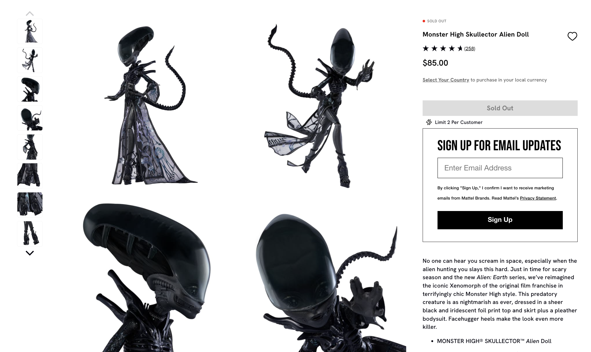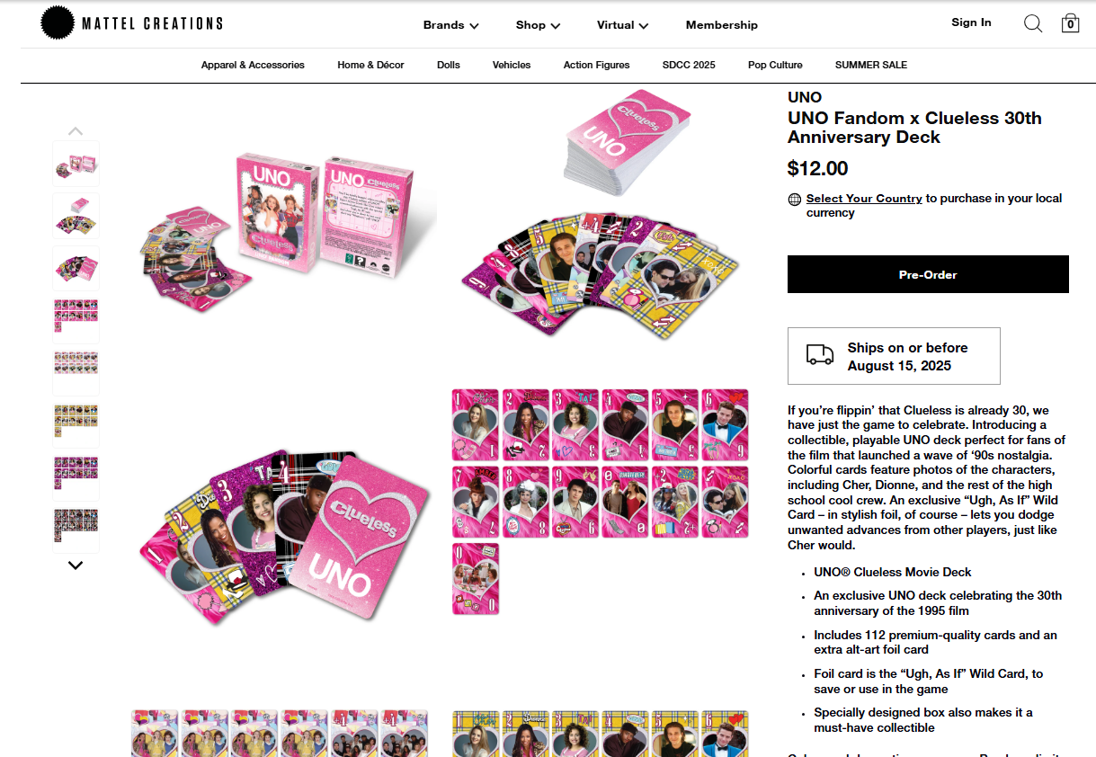 Examples of product pages done for various Mattel brands, intended for an adult collector audience.