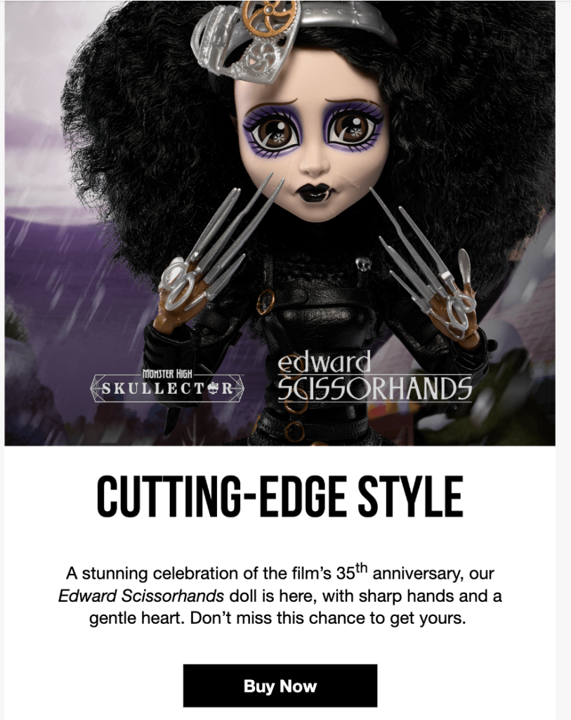 Short headlines and copy blocks promoting new products, mainly to an adult collector audience.